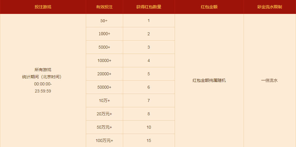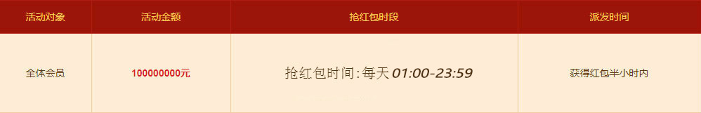 1.会员在北京时间01:00-23:59均可参加公司的抢红包活动,每个会员都有机会获得公司的大奖;